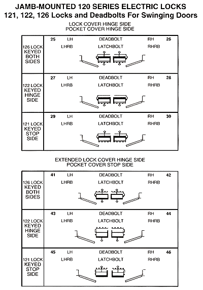 FA Swing/Key/Hand Chart 121, 122, 126  series locks